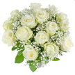 Elevate any occasion with MY ONLY, a luxurious hand-tied bouquet of large-headed white roses, gypsophila and glossy aspidistra leaves. Expertly arranged by Bounds Green Flowers in Bounds Green, this elegant white rose bouquet is perfect for anniversaries, weddings, sympathy gestures or simply to brighten someone's day with timeless beauty. Each stem is carefully selected for size and freshness, then delivered in bud so you can enjoy watching the roses gradually open into full, romantic blooms. With a guaranteed 5 days of freshness, this premium arrangement offers both style and lasting enjoyment. All available sizes are pictured so you can easily choose the perfect fit for your sentiment and space. A vase is shown for illustration only, allowing you to use your own favourite vase at home. As some flowers are seasonal, we may substitute with blooms of similar colour, size and value to maintain the luxurious look and feel of the bouquet. Enjoy reliable next day flower delivery across the UK on orders placed before 4 pm from Bounds Green Flowers - your trusted local florist for premium white rose bouquets.