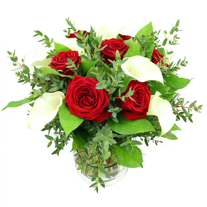 Celebrate unforgettable moments with the Nature Thrills bouquet from Bounds Green Flowers in Bounds Green. This luxurious hand-tied arrangement combines classic red roses, elegant white calla lilies and rich seasonal greenery for a dramatic, romantic look that suits anniversaries, Valentine's Day, birthdays or simply saying 'I love you'. Each bouquet is crafted by our expert florists using premium, long-lasting stems, with Flowers are delivered in bud so you can enjoy watching your roses and calla lilies open and reach their full beauty at home. Guard petals on the roses protect the inner blooms during transit and can be gently removed on arrival for a flawless finish. Due to seasonal availability, we may substitute certain stems with blooms of similar colour, style and value, ensuring your bouquet always looks full and exquisite. Enjoy fast next-day flower delivery across London and the UK on orders placed before 4 pm, with secure, carefully packaged shipping direct from our Bounds Green flower shop. Surprise someone special or treat yourself to this romantic Nature Thrills rose and calla bouquet today.